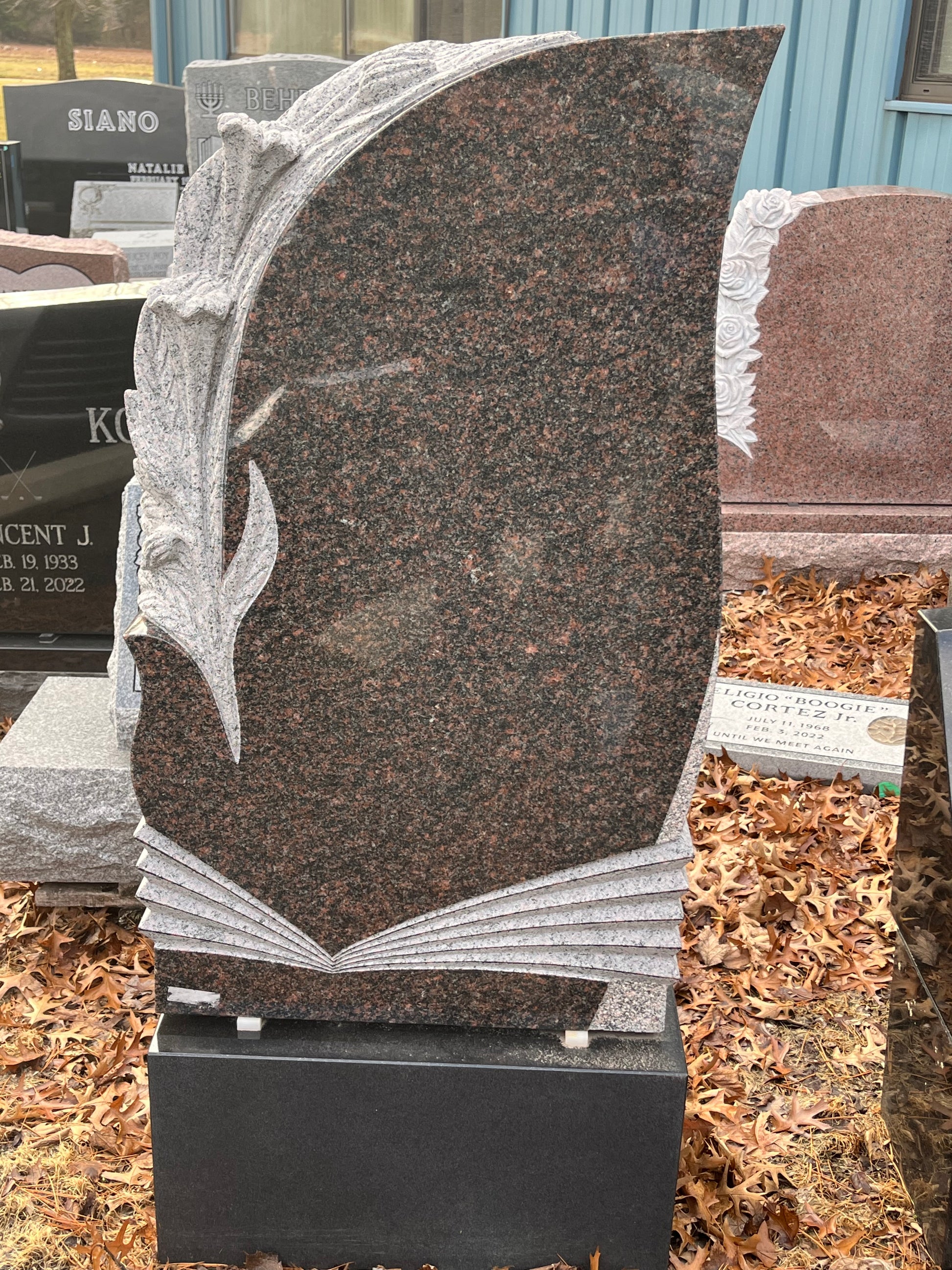 An architectural memorial headstone is a custom-designed monument that blends artistic expression with structural design to commemorate a loved one. These headstones are typically crafted from durable materials such as granite, marble, or bronze and feature distinctive architectural elements such as columns, arches, pediments, or sculptural reliefs. The design may reflect classical, modern, or stylized influences, offering a dignified and lasting tribute that honors the individual’s legacy. Personalization options often include engraved inscriptions, symbols, religious motifs, or custom artwork, providing a unique and meaningful remembrance within a cemetery or memorial garden setting.